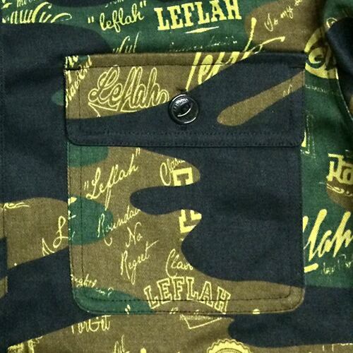 これまでLEFLAHで使われてきたロゴをオリジナル迷彩柄にオンした総柄のシャツは生地感も厚くシャツジャケットとしても使えます。