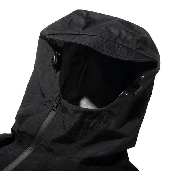 防風性とファッション性を兼ねたハイネックな前立てや、縦ラインに備えたファスナー類、各所に施された道衣仕様、それらをカッティングで実現したシャープなシルエット。