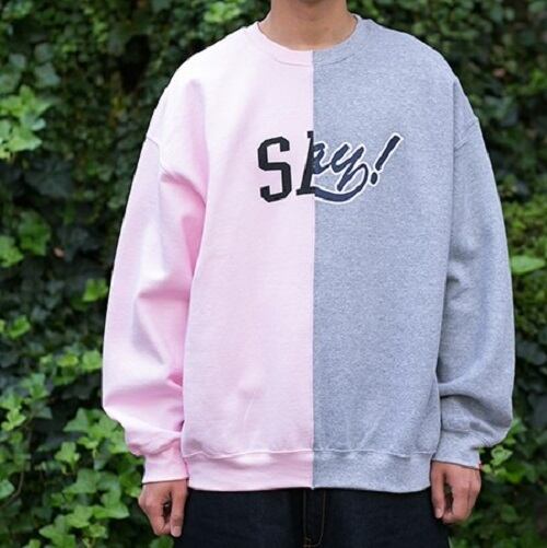 2種類のスウェットを一度解体した後に異なる柄で再度繋ぎ合わせた、再構築をテーマに作られたオーバーサイズクルーネックスウェット。