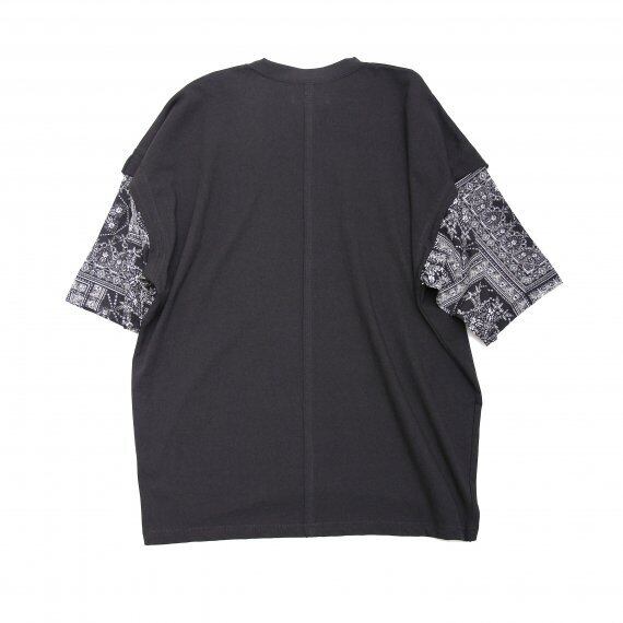コットンボディに肌触りのよいバンダナ柄生地をレイヤード状に袖に取り付けたカットソーです。